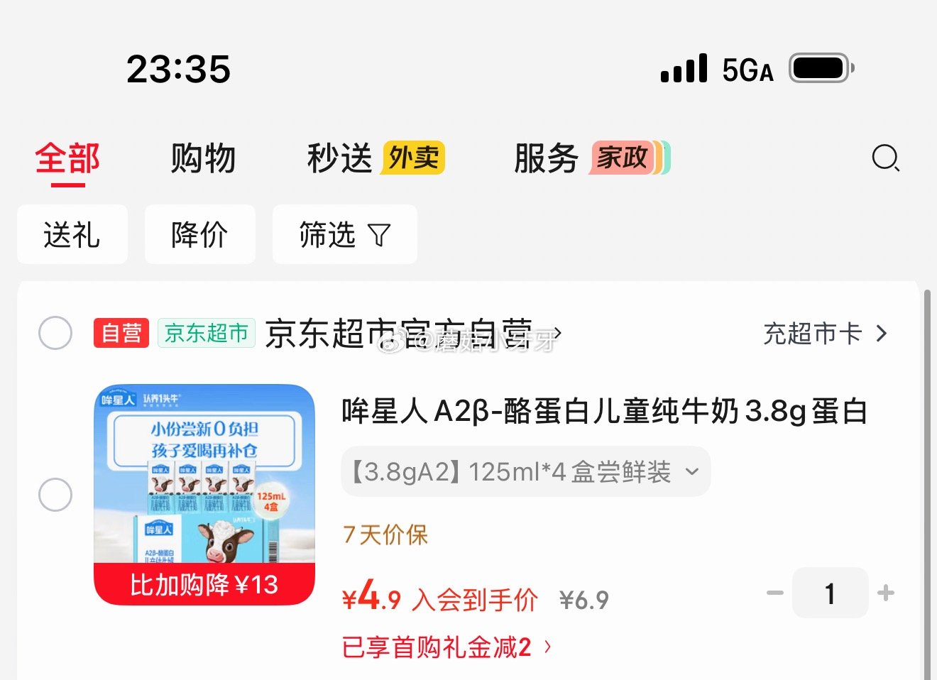 哞星人A2β-酪蛋白儿童纯牛奶3.8g蛋白 125ml*4盒