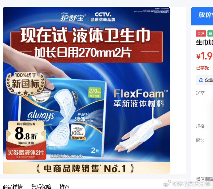 京东领6-5个护券,1.9元换护舒宝2片
