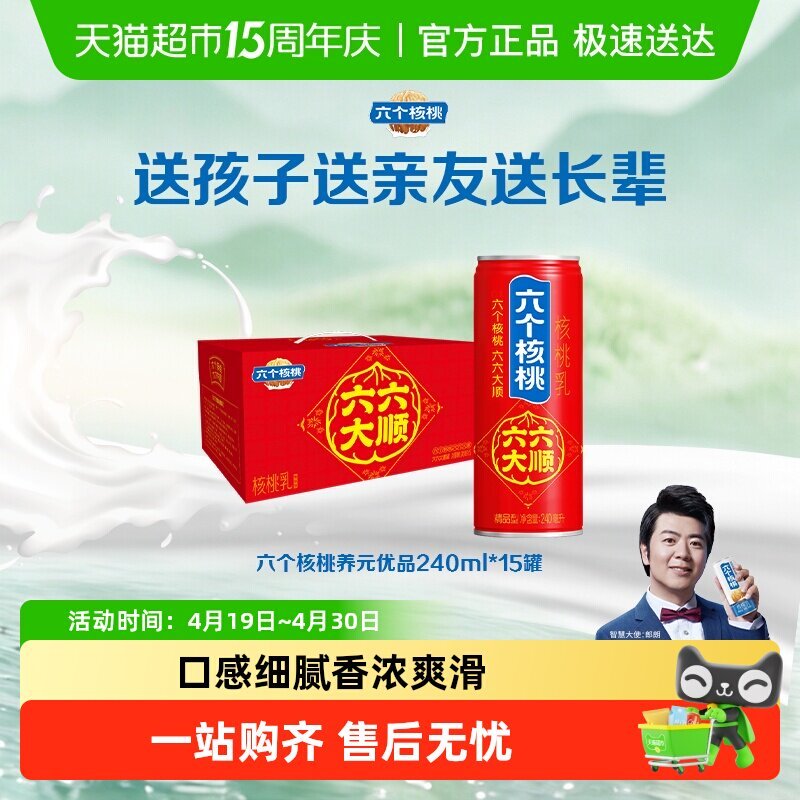部分地区有立减17 养元 六个核桃六六大顺240ml*15罐选项 网页链接 淘金币-我的足迹,2件 vip【37.51】 养元六个核桃六六大顺240ml*15罐植物蛋白营养核桃乳饮料整箱 领券页面显示返1元猫超红包 (每天一次)
