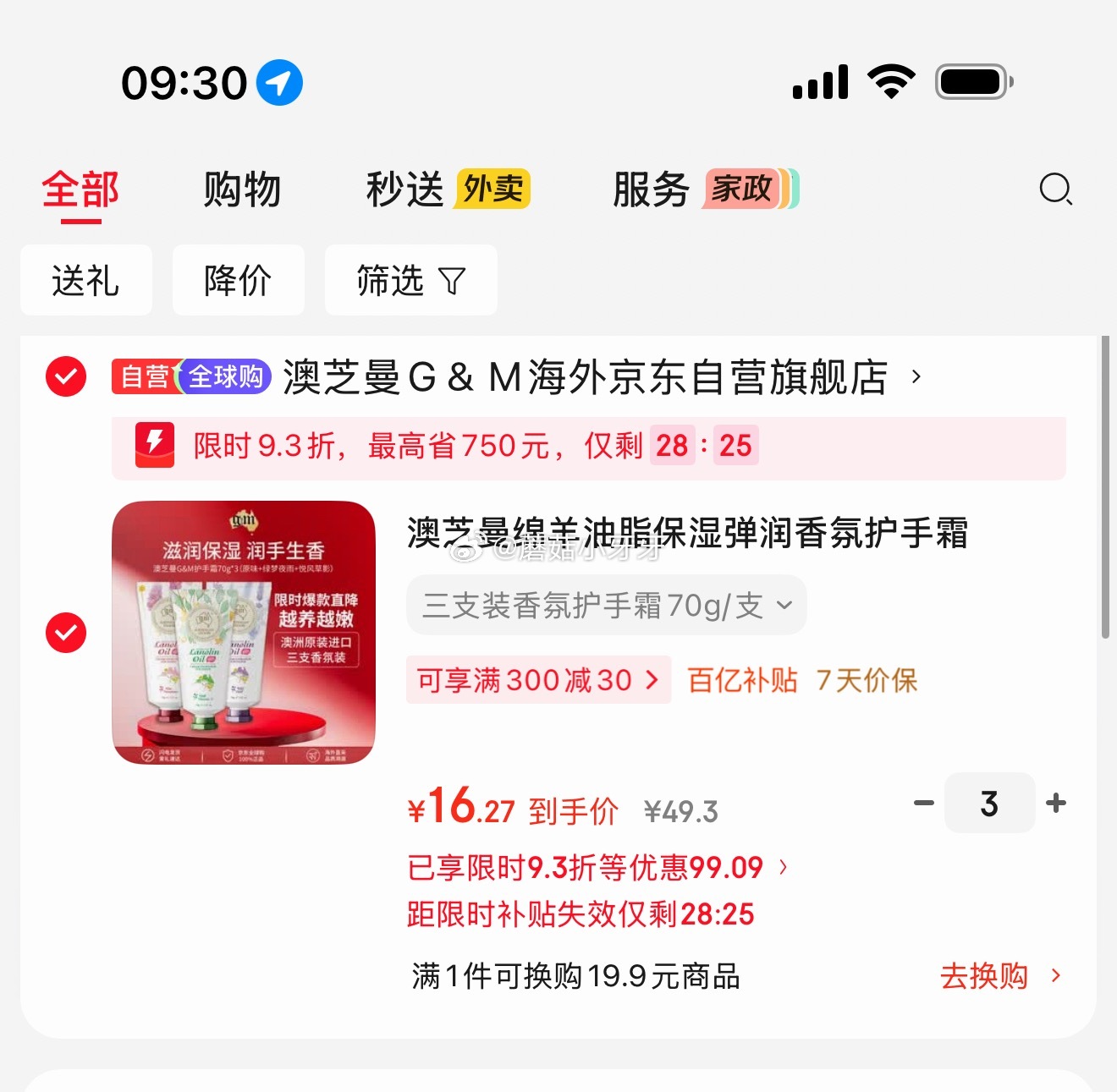 🐶东 澳芝曼护手霜3支弹9.3折 到手48.81元