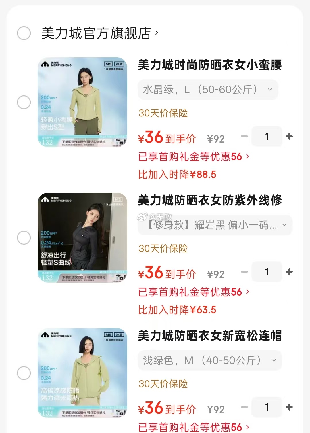 速,新客只需36+ 美力城 原纱修身凉感防晒衣