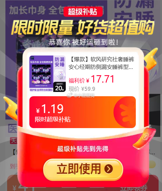 软风研究社奢睡裤20条,领1.19礼金到手17.71