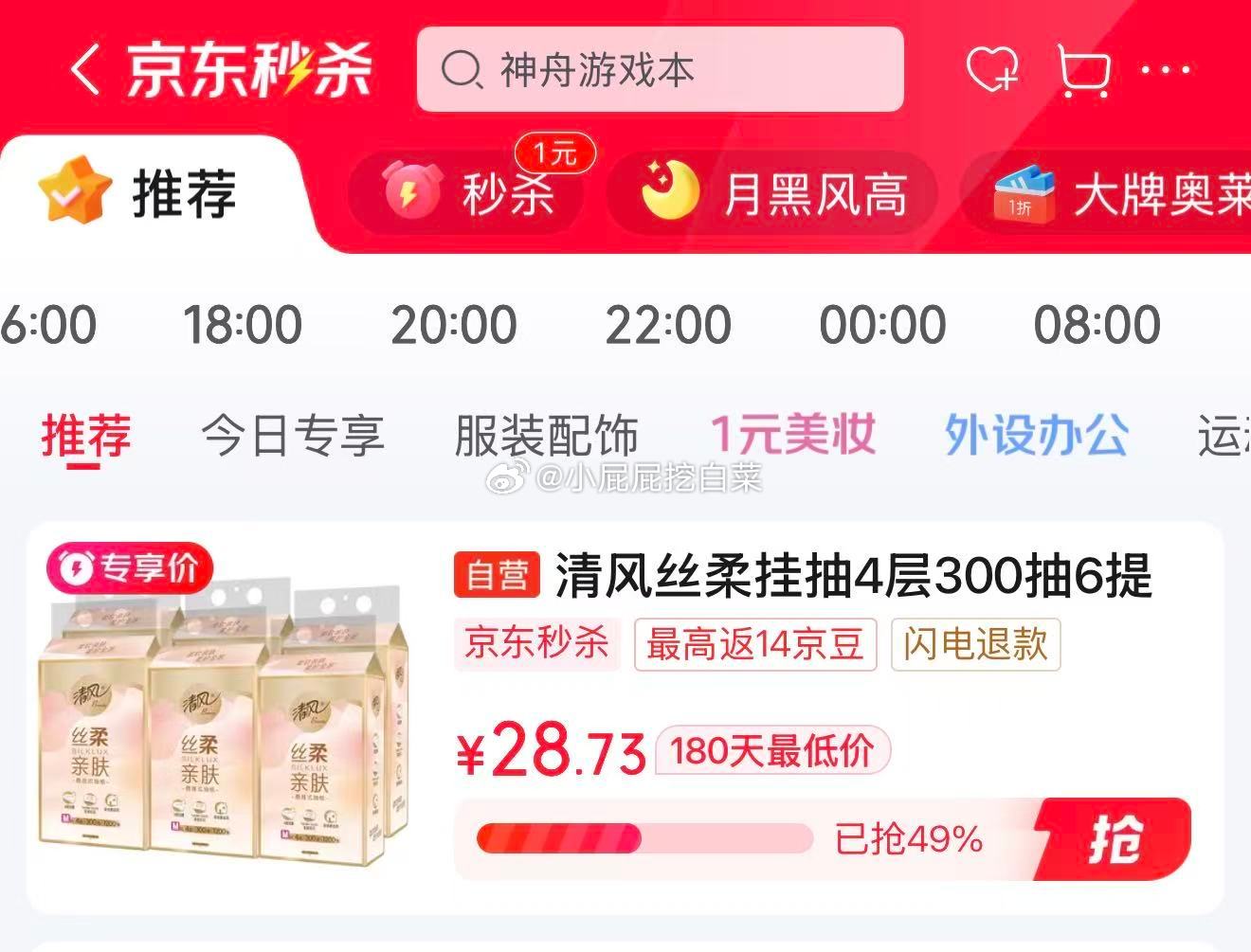 网页链接 PLUS会员券网页链接 秒杀会场找到此商品专享价,先加购再去会场找清风悬挂式抽纸 丝柔挂抽4层300抽*6提,会场加购1件 凑单后21.52目前赠10元清洁津贴,相当于11.52清风悬挂式抽纸 丝柔挂抽4层300抽*6提 挂抽纸巾抽纸擦手纸整箱卫生纸凑单1件网页链接