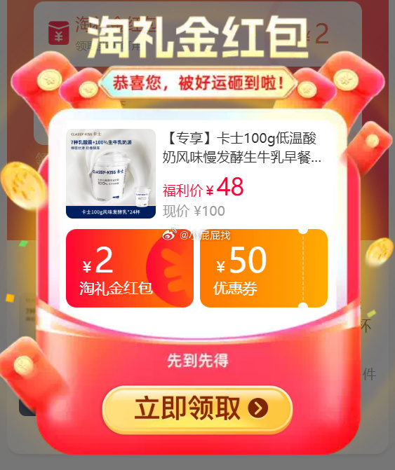 🥛卡士原味酸奶24杯领2礼金到手46元