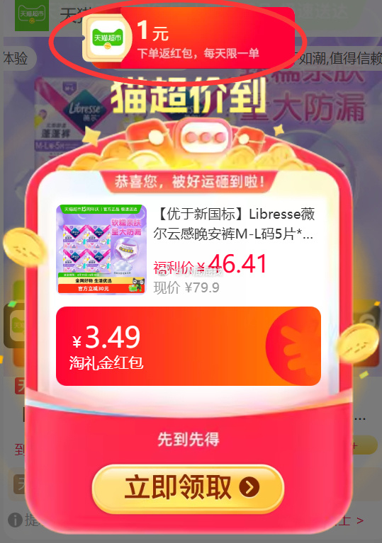 Libresse薇尔云感晚安裤M-L码5片*4包,领2.43礼金,猫超首页进入超级补贴领39-6红包商品下方如有7元福袋,凑后88会员17.68【优于新国标】Libresse薇尔云感晚安裤M-L码5片*4包凑单参考1件(需要在超级补贴页面加购)得力春联无痕网格双面布基胶带不留痕对联无痕贴高粘度红色胶固定