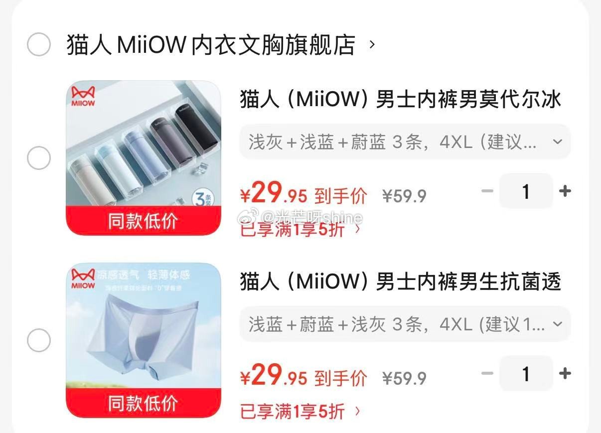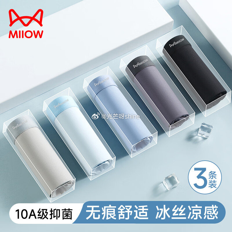领内衣5折券 网页链接 猫人 (MiiOW)男士内裤男莫代尔冰丝凉感 3条,任选1款【29】 猫人(MiiOW)男士内裤男冰丝凉感抗菌透气内裤夏季薄款平角内裤头男裤衩 浅... 猫人(MiiOW)男士内裤男生抗菌透气凉感冰丝内裤男款平角内裤短裤衩裤头 浅...