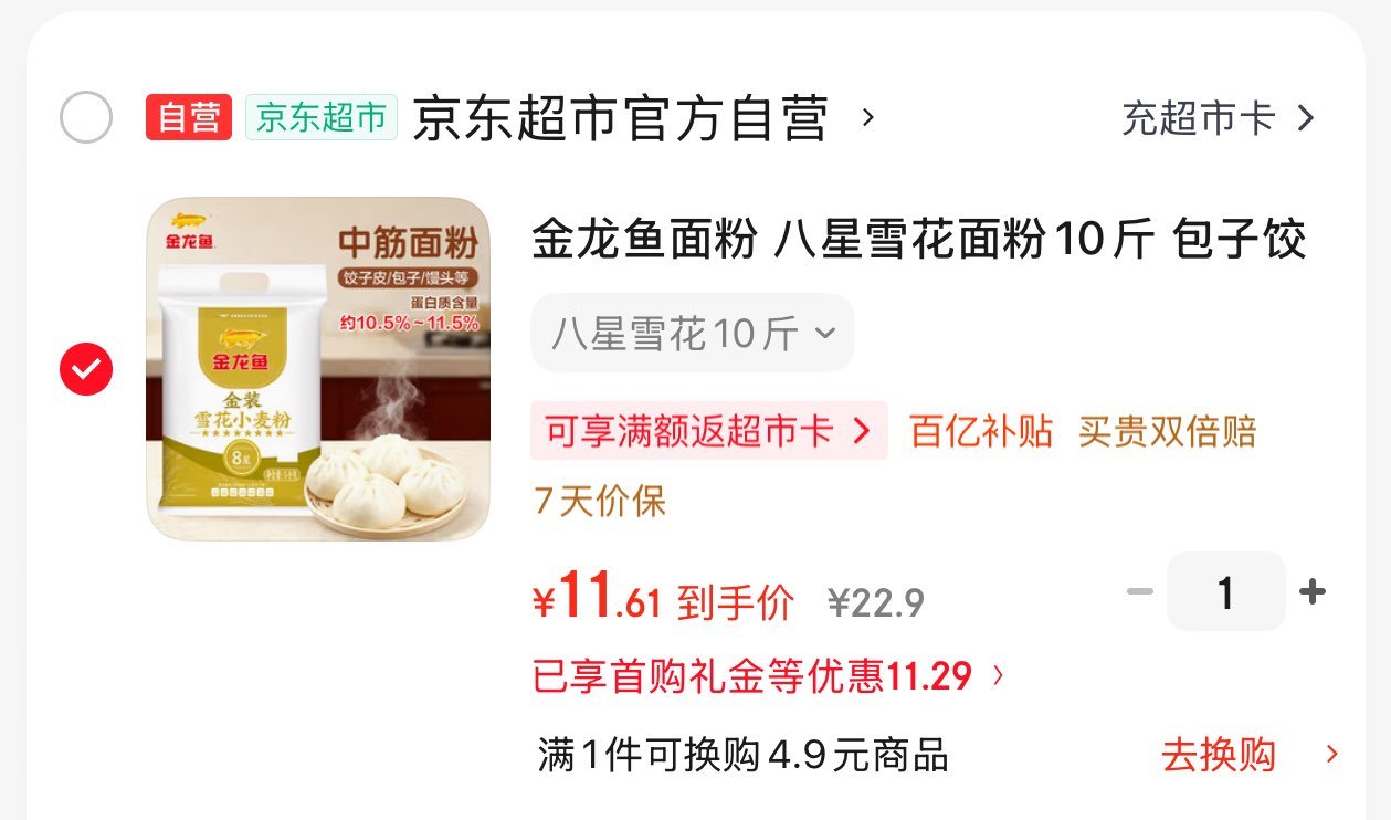 🥟金龙鱼八星雪花面粉10斤首单9元
