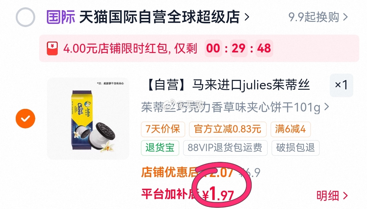1.9元自营马来进口茱蒂丝巧克力饼干
