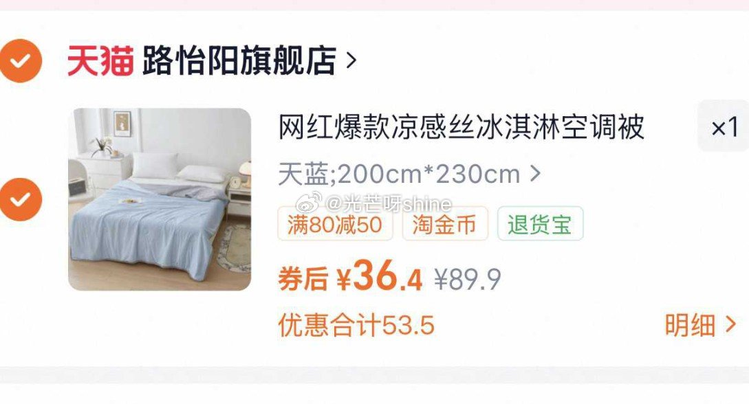 路怡阳凉感丝冰淇淋空调夏凉被,到手【36.4】,所有尺寸同价,自辩