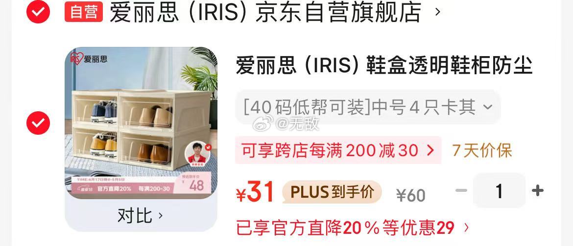 爱丽思透明鞋柜4个装,Plus首购到手价31元