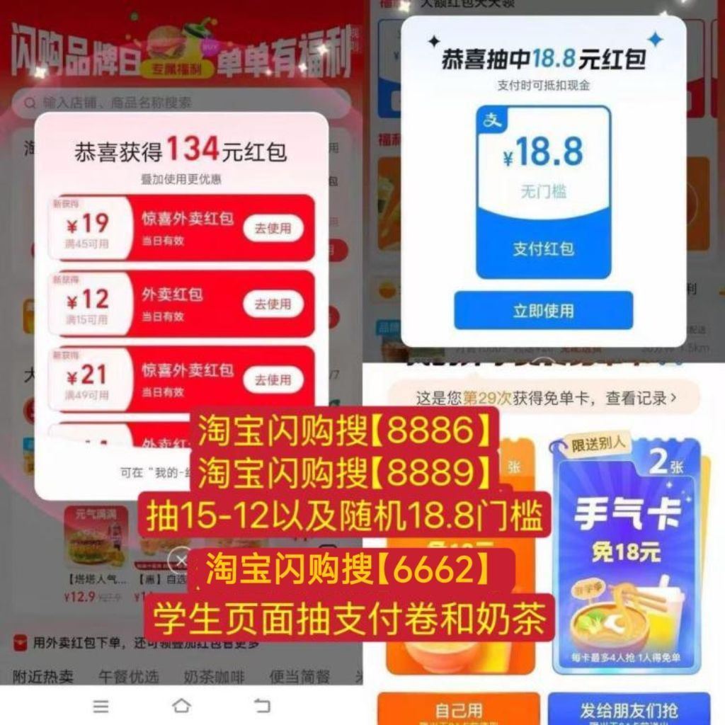 速领 补 限时加码15-10~15❗ 范围超级广的 和随机18.8门槛 - 1️⃣淘宝闪购搜【8886】 每日领10-15虹包+叠加商家 ✨页面千问虹包最高-8.8元 - 2️⃣闪购搜【6662】+【6667】 页面抽18.8支付埢+奶茶卡 网页链接