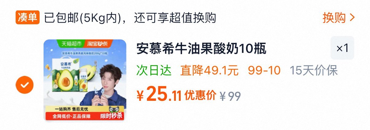 🥑伊利安慕希牛油果酸奶10瓶,领券后25.11元