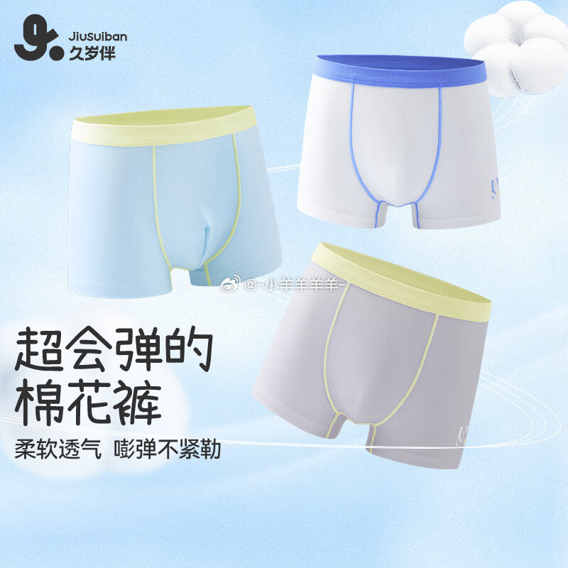 久岁伴儿童抑菌平角内裤3条仅33.9元