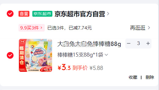 大白兔棒棒糖88g15支临期 🎉买3件9.9