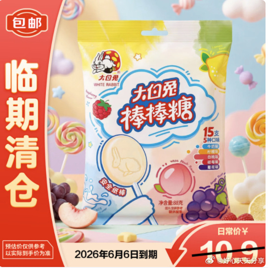 京东大白兔棒棒糖88g临期三件9.9🧧