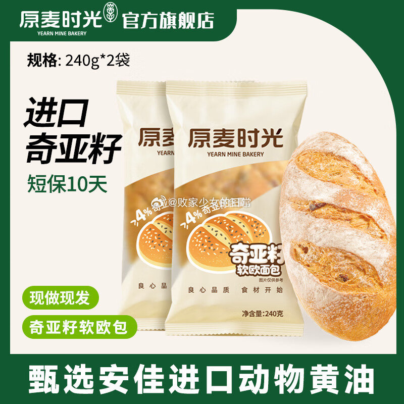 原麦时光奇亚籽软欧包到手19.99
