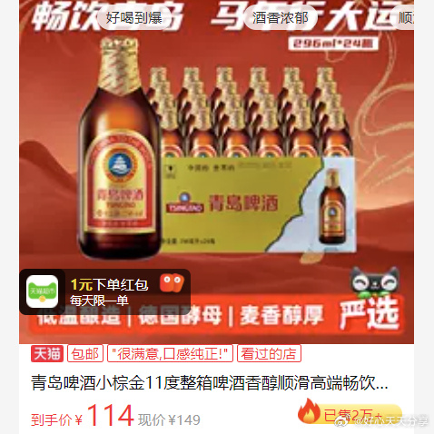 【猫超】用200-25消费券网页链接青岛啤酒 小棕金11度296ml*24瓶青岛啤酒小棕金11度整箱啤酒香醇顺滑高端畅饮囤货从主图右上角进入直播间,弹领9折券,标题下领10券加购用右边方法加购抵扣淘金币网页链接 再加购1件购物车数量修改为1 凑后88vip【64.91】凑款迪卡侬速干长袖T恤男秋训练健身衣保暖长袖速干衣运动上衣RFX1