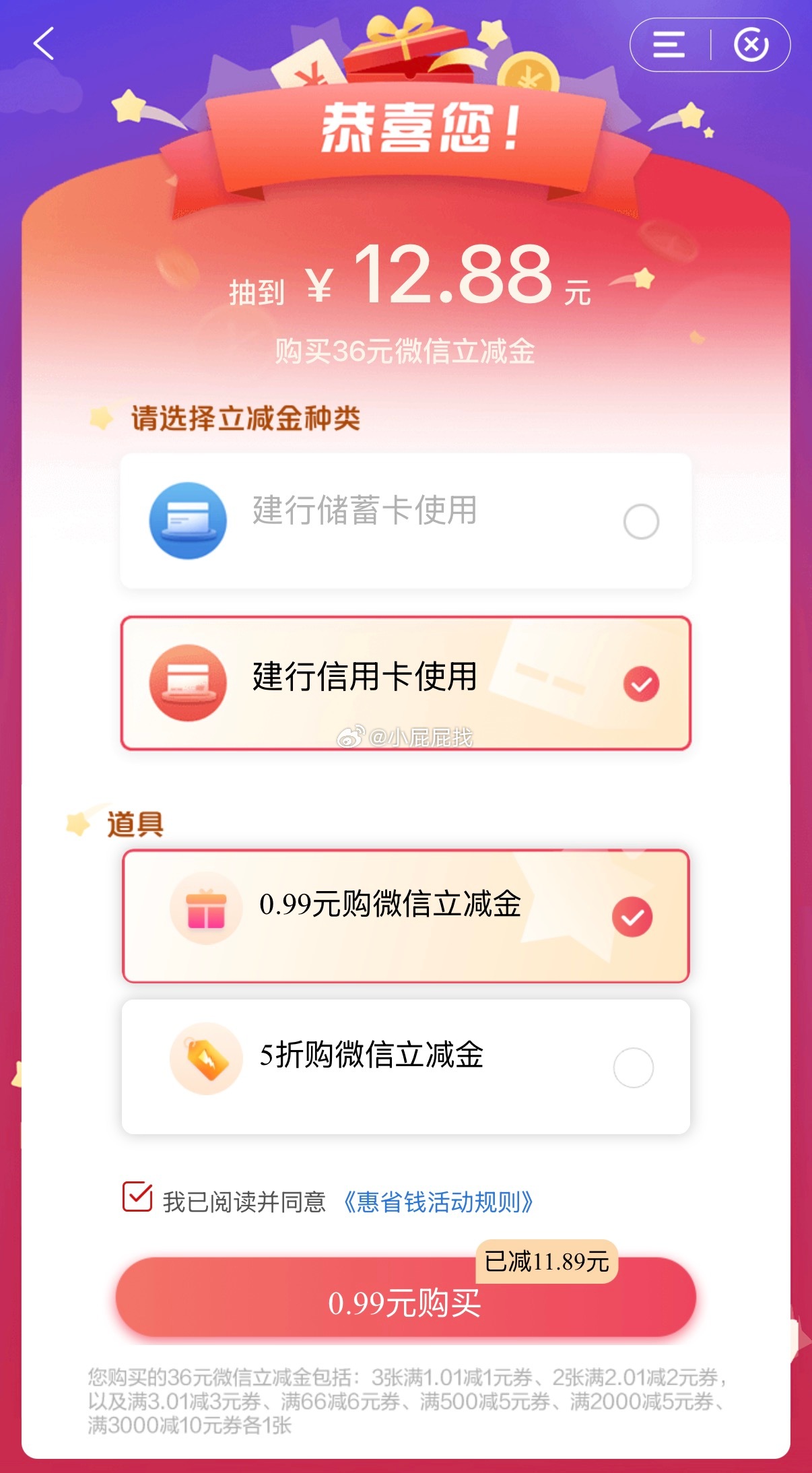 建行5.99购36元立减金优惠