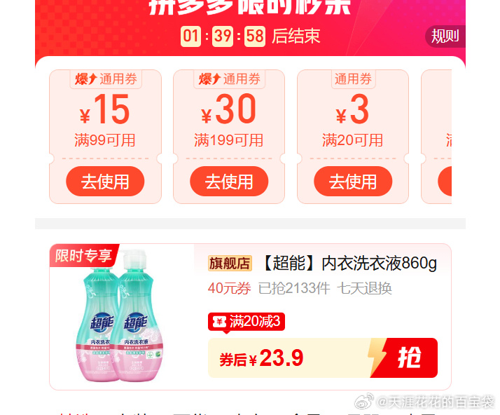 🛒拼多多旗舰超能内衣洗衣液2瓶23.9元🧺