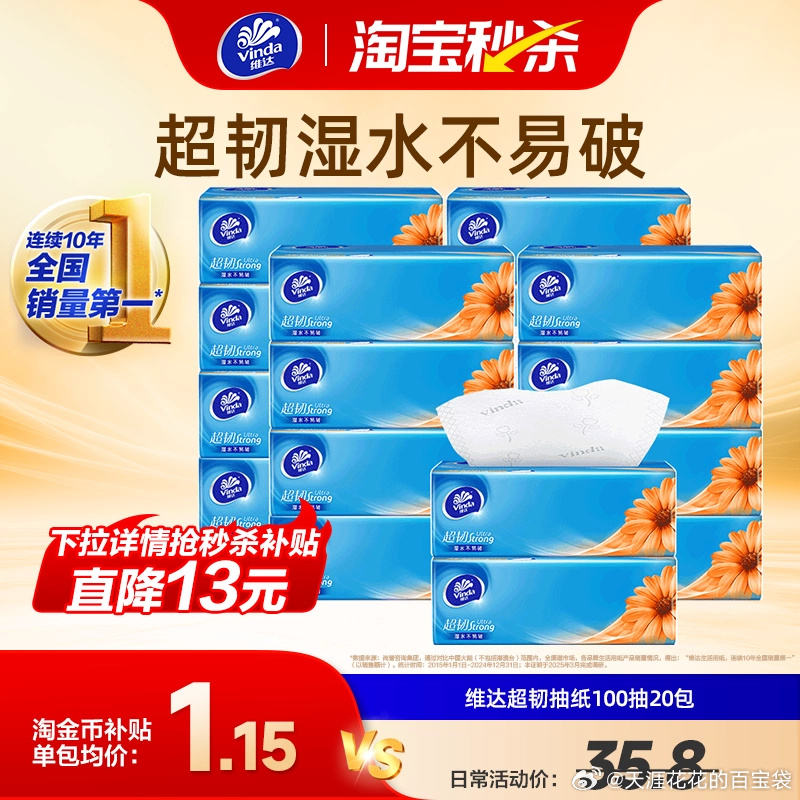 维达 超韧抽纸S码 100抽*20包,【22.8】