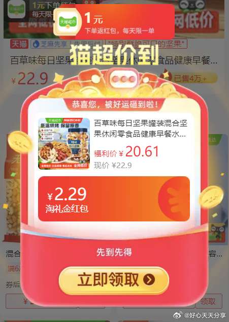 【猫超】部分账号标题下有3元福袋从超市首页搜【零食】页面领3元品类金百草味 每日坚果罐装400g 弹礼金百草味每日坚果罐装混合坚果休闲零食品健康早餐水果干腰果巴旦木从淘金币-我的足迹网页链接 拍下88vip【12.79】