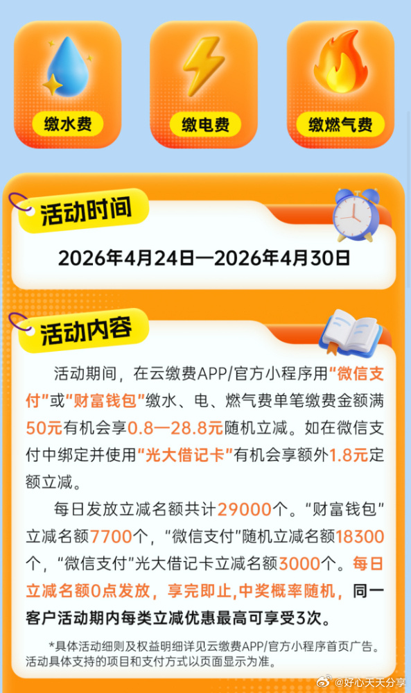 云缴费活动来袭!两种支付各减3次名额