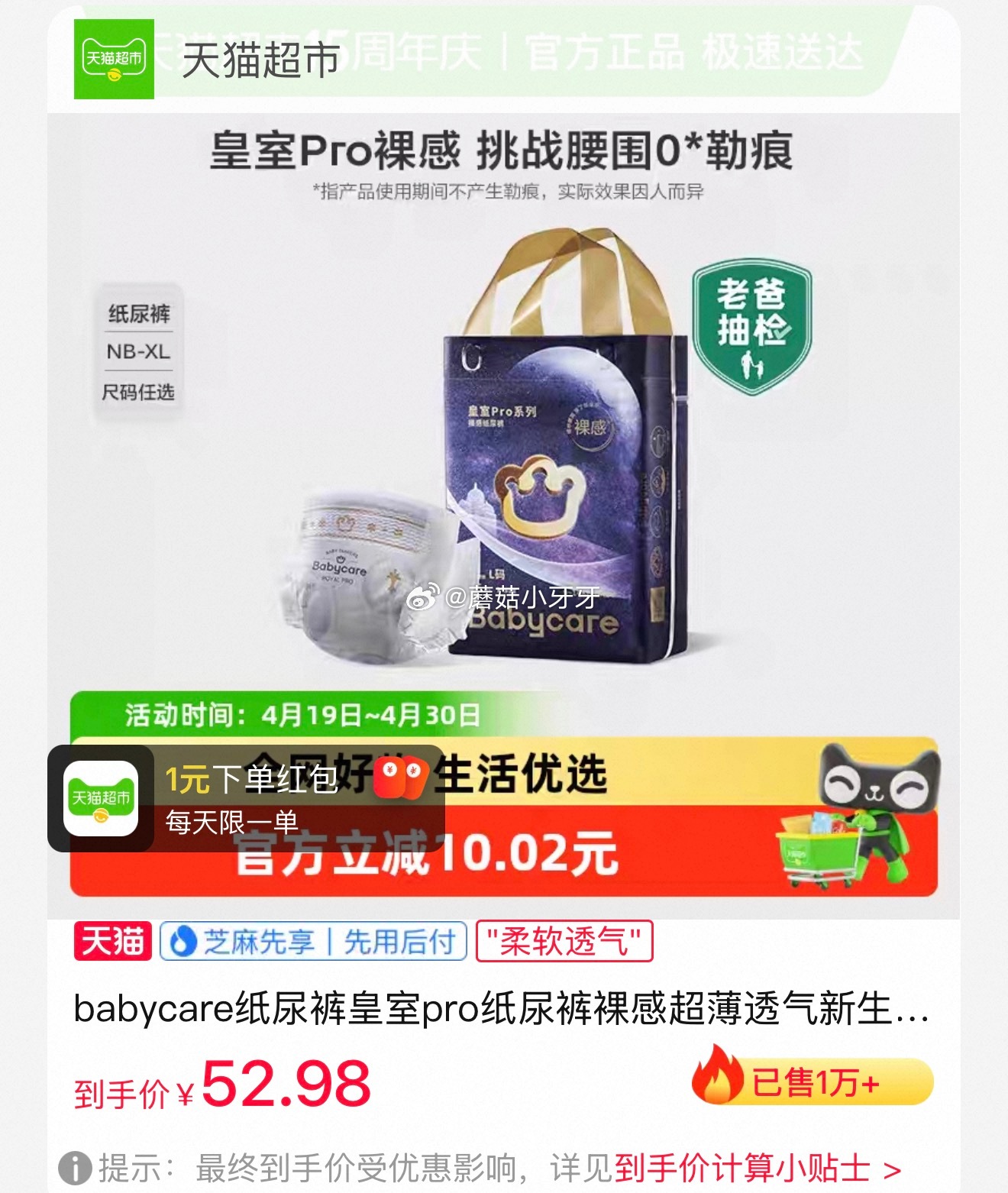 🐱超部分地区有补贴11.9babycare纸尿裤皇室pro纸尿mini装超市首页搜索babycare,部分有5品牌金淘金币页面加购拍1件vip+金币+10福袋【20.32】 (如返1猫超红包相当于到手19.32,每天返一次) 如还有之前领的5品牌金到手更低 babycare纸尿裤皇室pro纸尿裤裸感超薄透气新生儿mini装尿不湿