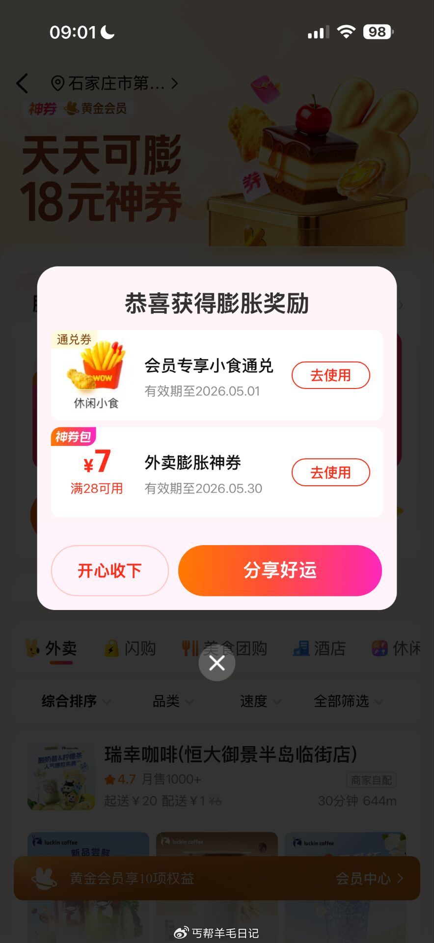 美团搜唐国强领小食免单卡