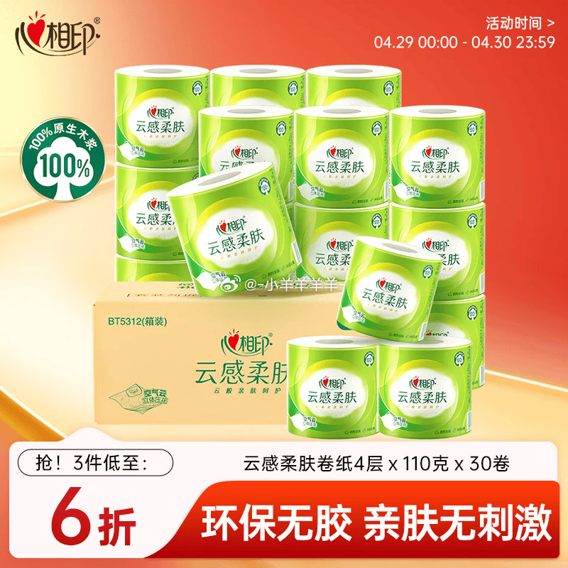 📦心相印云感柔肤卷纸30卷 拍3件每件15.74