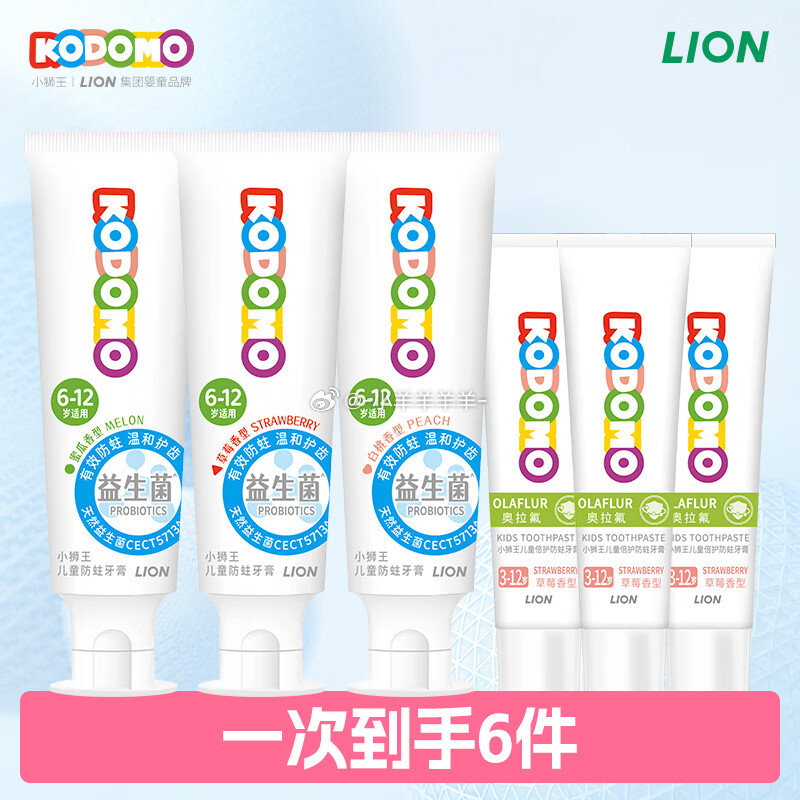 先领卷 网页链接 自营狮王 6-12岁儿童益生菌含氟牙膏50g*3支 狮王(Lion)小狮王儿童牙膏6-12岁 益生菌含氟防蛀宝宝牙膏50g*3 plus付27.16元,赠奥拉氟20g*3支,折4.5/支