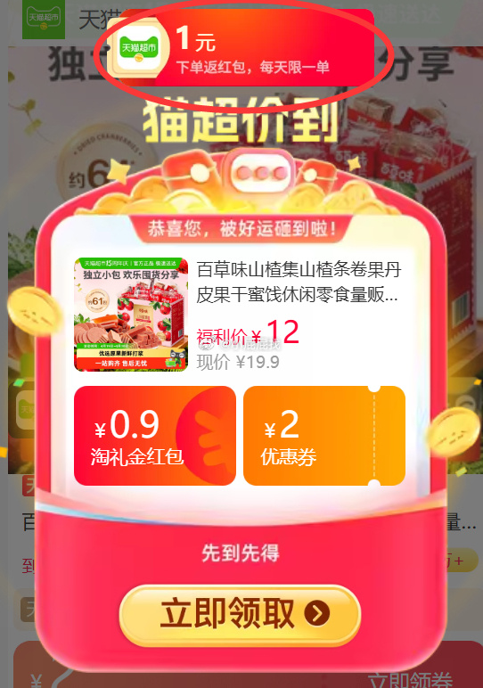 百草味山楂集500g,领0.9礼金+2券,详情页进入超级补贴加购1件