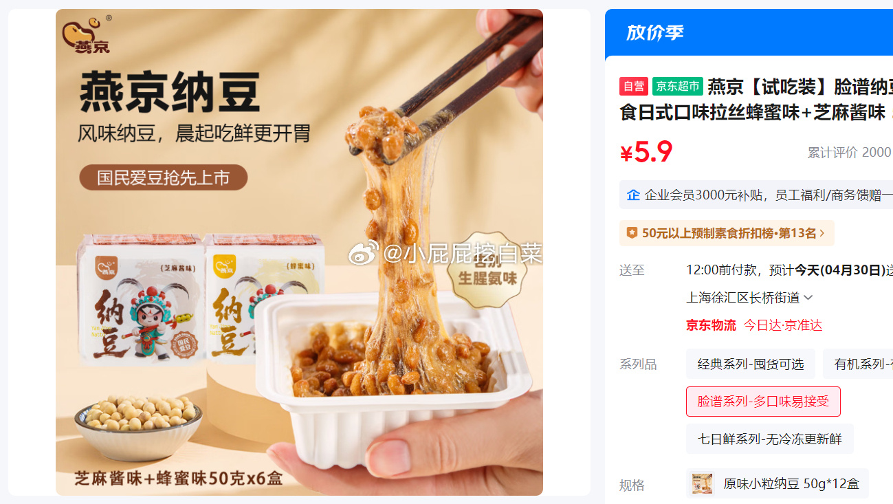 燕京脸谱纳豆即食试吃装5.9元🔥蜂蜜芝麻酱味