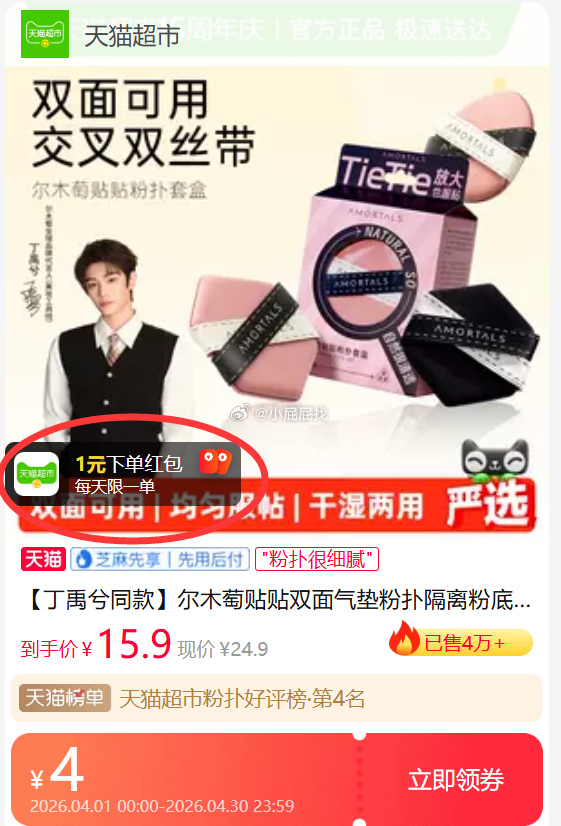 尔木萄贴贴双面气垫粉扑3枚【丁禹兮同款】尔木萄贴贴双面气垫粉扑隔离粉底液专用干湿两用ttp://t.cn/AXboxx5A 淘金币页面-我的足迹加购1件商品下方如有3元福袋,88会员+淘金币抵扣完10.16