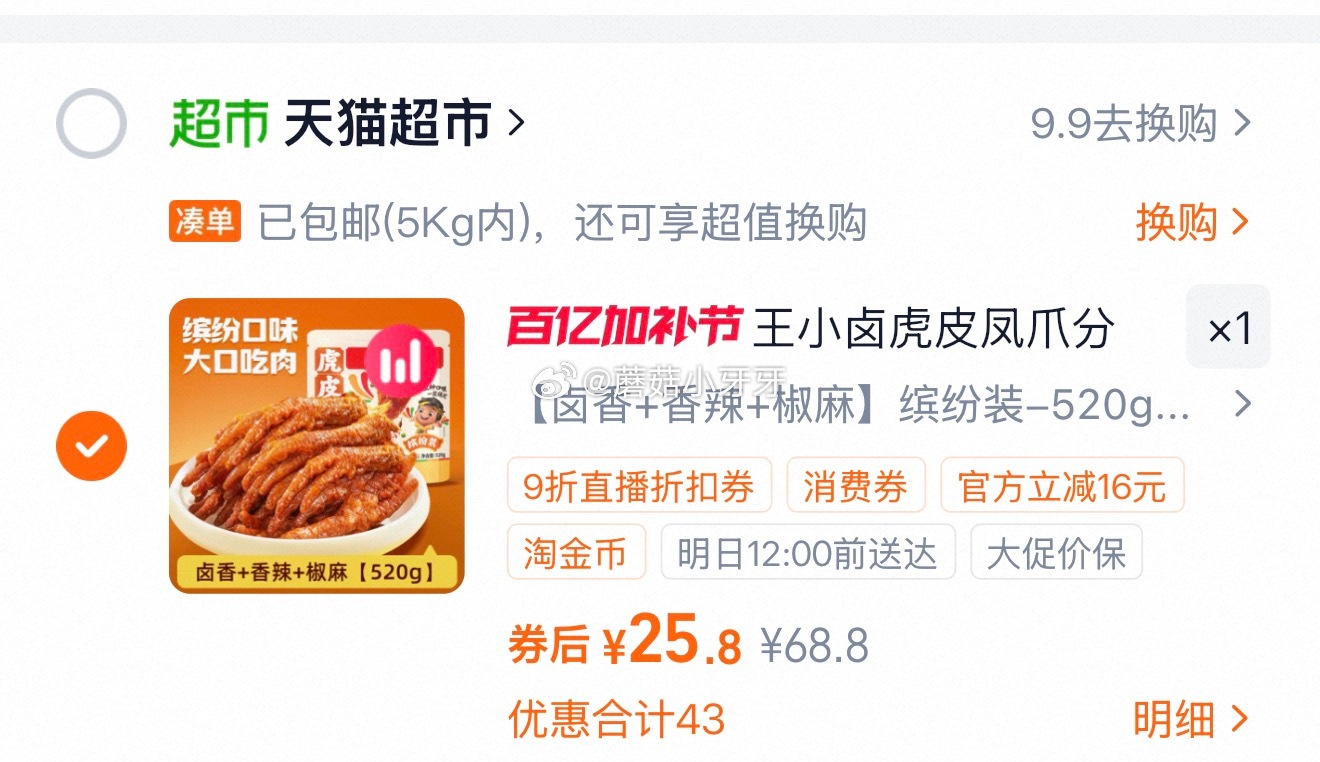 王小卤虎皮凤爪分享装520g,领礼金王小卤虎皮凤爪分享装卤香香辣缤纷装肉类鸡爪解馋小零食