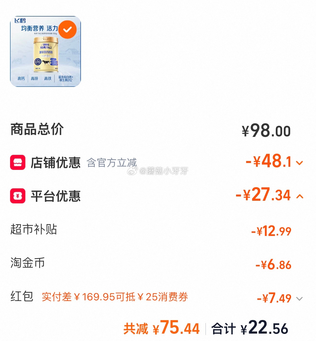 🐱超飞鹤经典1962中老年加锌铁钙奶粉700g选项,领礼金超市首页底栏点“一键领取” ,部分有20-4红包淘金币页面-足迹下单网页链接,拍1件【22.56】(没有20-4红包可凑消费券) 飞鹤经典1962中老年奶粉高钙多维成人奶粉罐装补钙营养奶粉