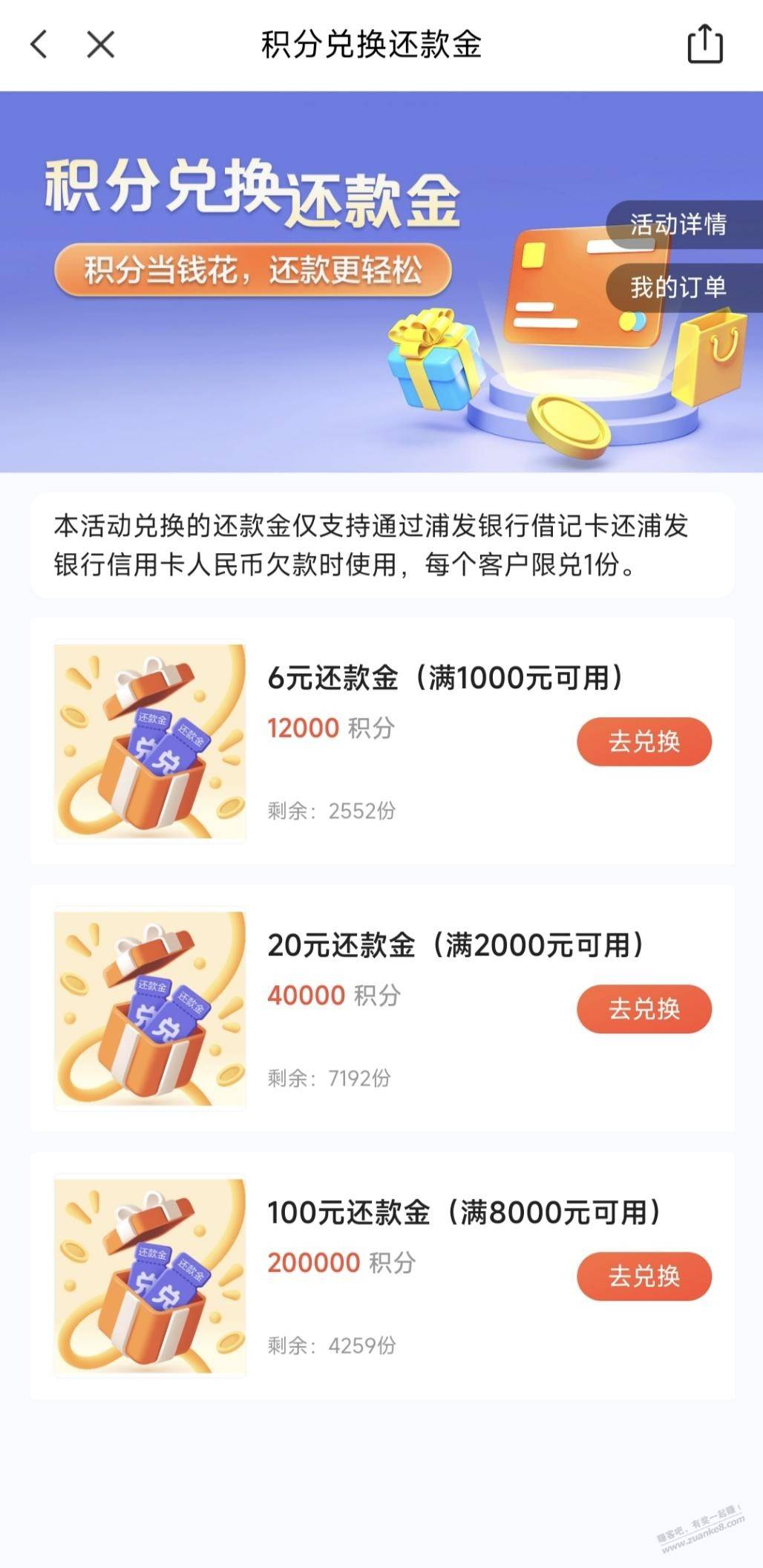 浦大喜奔积分兑换100还款