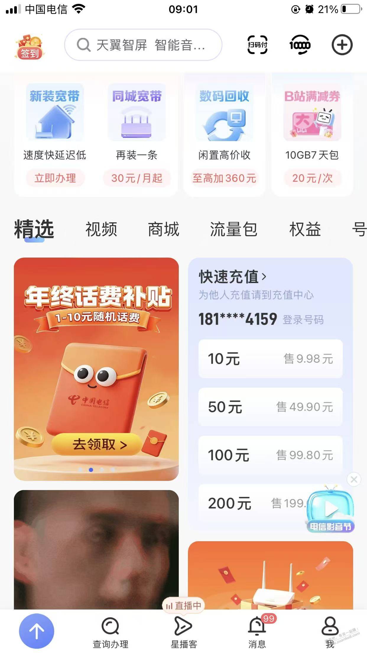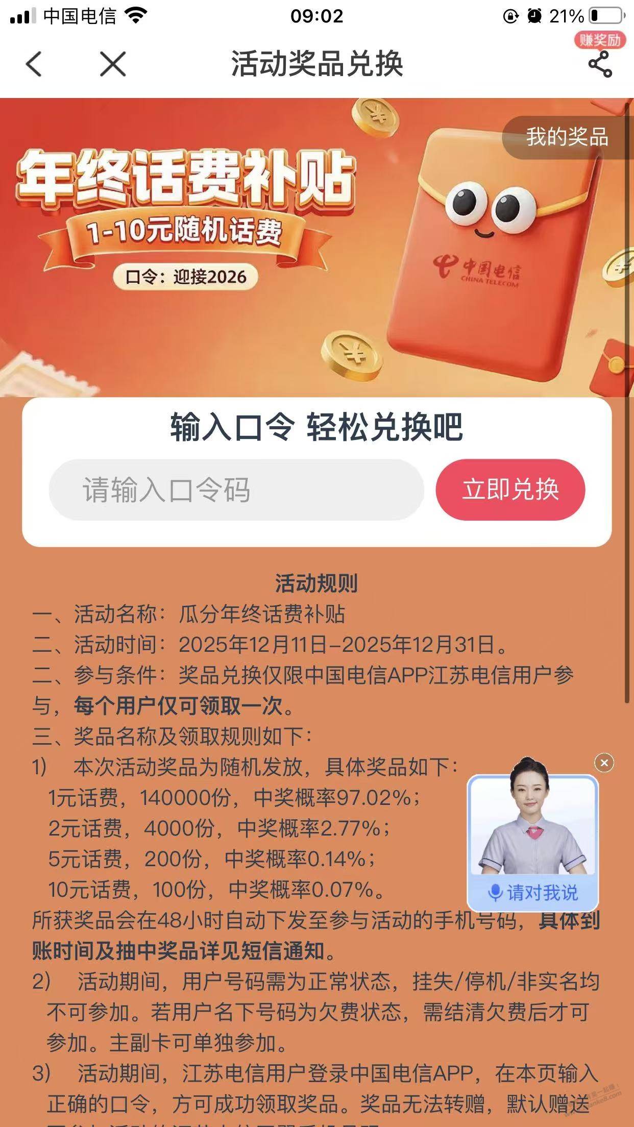 中国电信app,江苏可领,其他地方自测,不确定