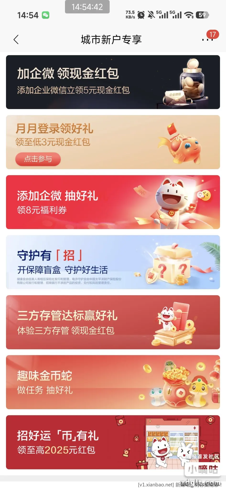 招商银行(深圳珠海惠州)城市新户专区,加企微有5元现金红包,用没加过招商的微信去加就能完成