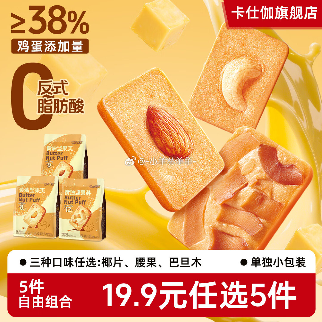 卡仕伽黄油坚果饼干椰片45g*1袋,任选5件19.9元折3.9/袋!