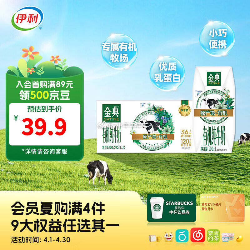 金典有机纯牛奶200ml*10盒 买2件49.81元