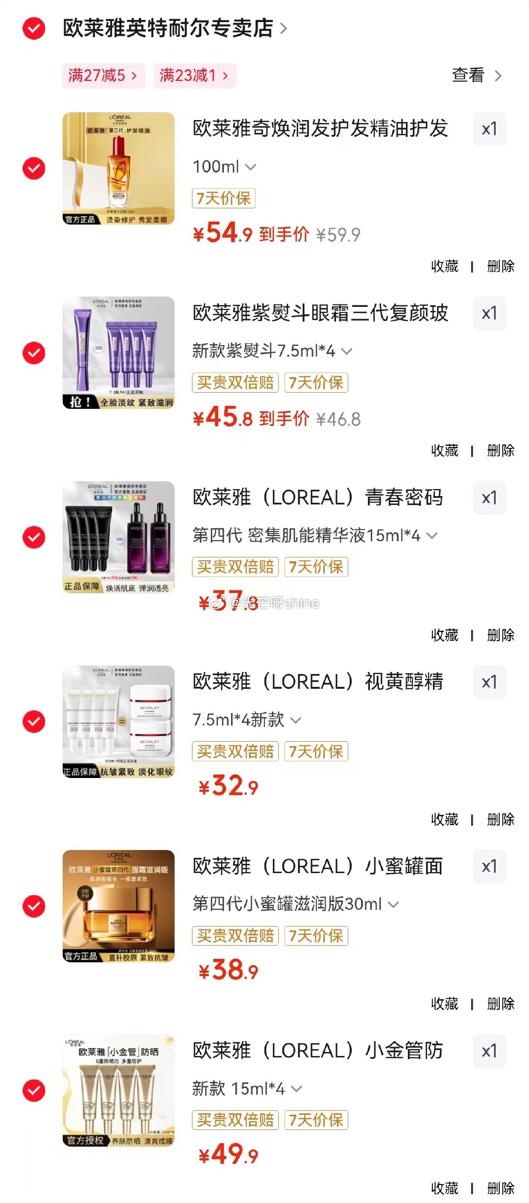欧莱雅 小金管防晒霜15ml*4【49.9】