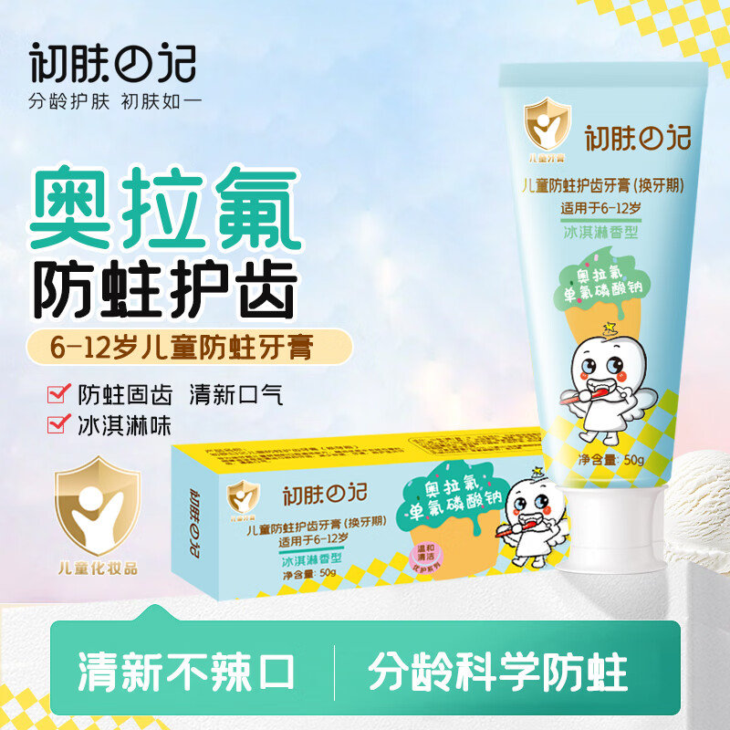 初肤日记儿童防蛀含氟牙膏 防蛀护齿50g 3-12岁适用