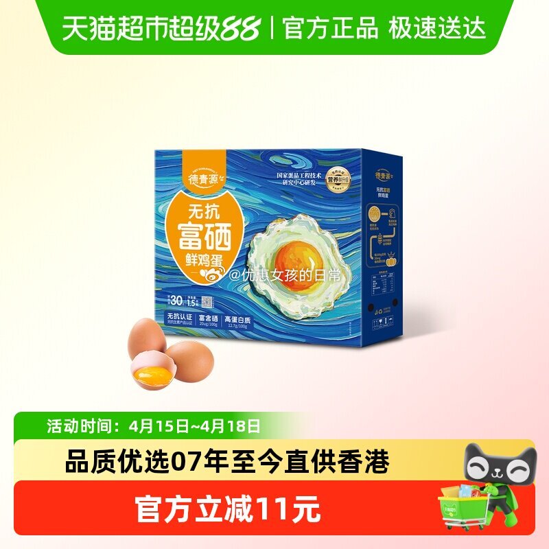 猫超 德青源富硒鲜鸡蛋30枚,领礼金顺丰上门德青源富硒鲜鸡蛋30枚无抗营养早餐无蛋腥味【详情页领券 淘金币页面-足迹加购 网页链接 商品下领59-6,凑完vip到手【15.14】 凑1件 江昊阳四川安岳黄柠檬尤力克当季现摘新鲜水果商用榨汁小金桔整箱
