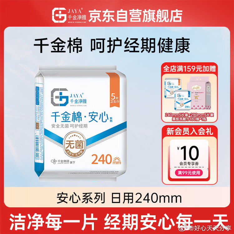 干金净雅 安心纯棉透气日用卫生巾240mm*5片【0.99】