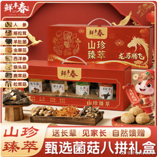 鲜丰春菌菇礼盒高端西洋参羊肚菌猴头菇山珍干货母亲节送长辈实用送礼品