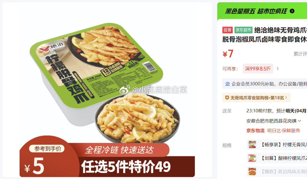 绝洽绝味无骨鸡爪柠檬酸辣脱骨泡椒凤爪,弹出2券+首购2礼金,1