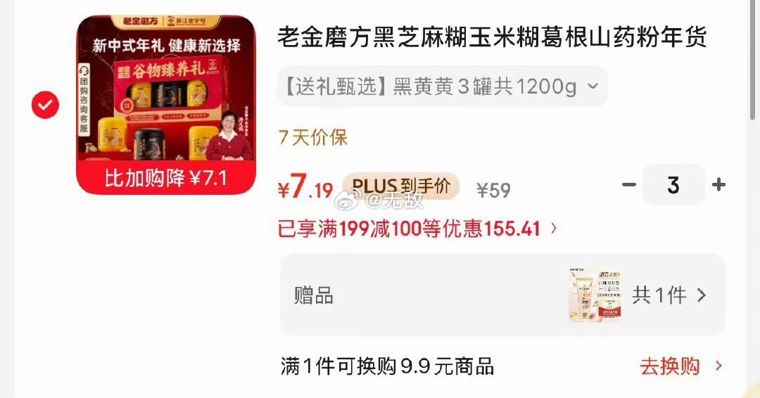 老金磨方黑芝麻糊礼盒1200g 3件每件7.19元💰