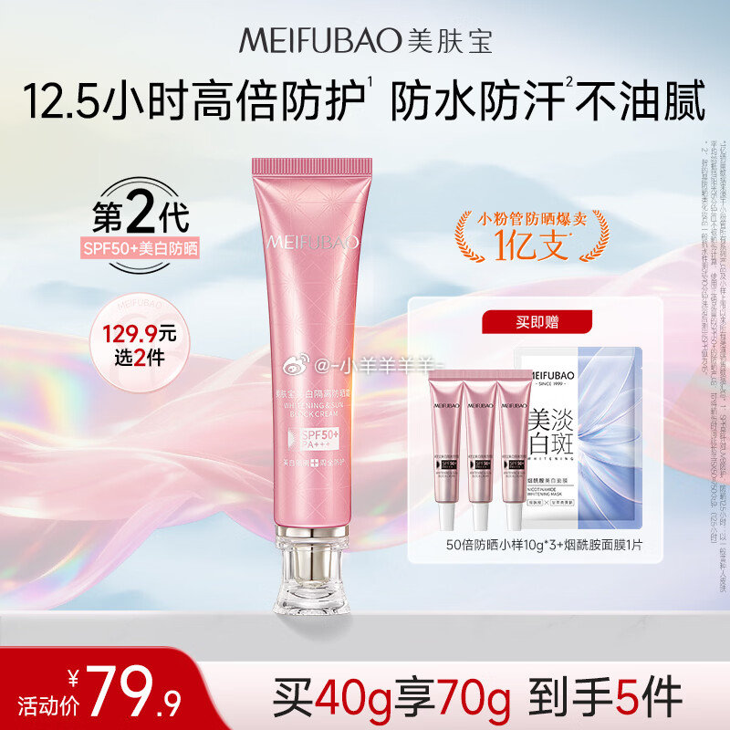 美肤宝小粉管防晒霜40g拍下74.9元赠小样面膜