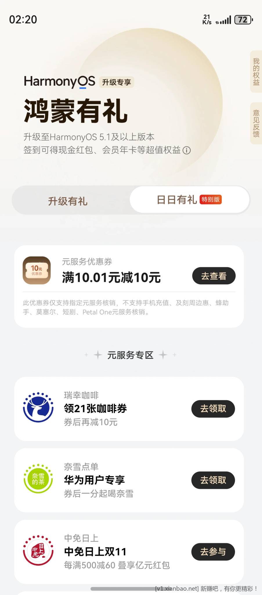 鸿蒙有礼领取10元券充国网电费