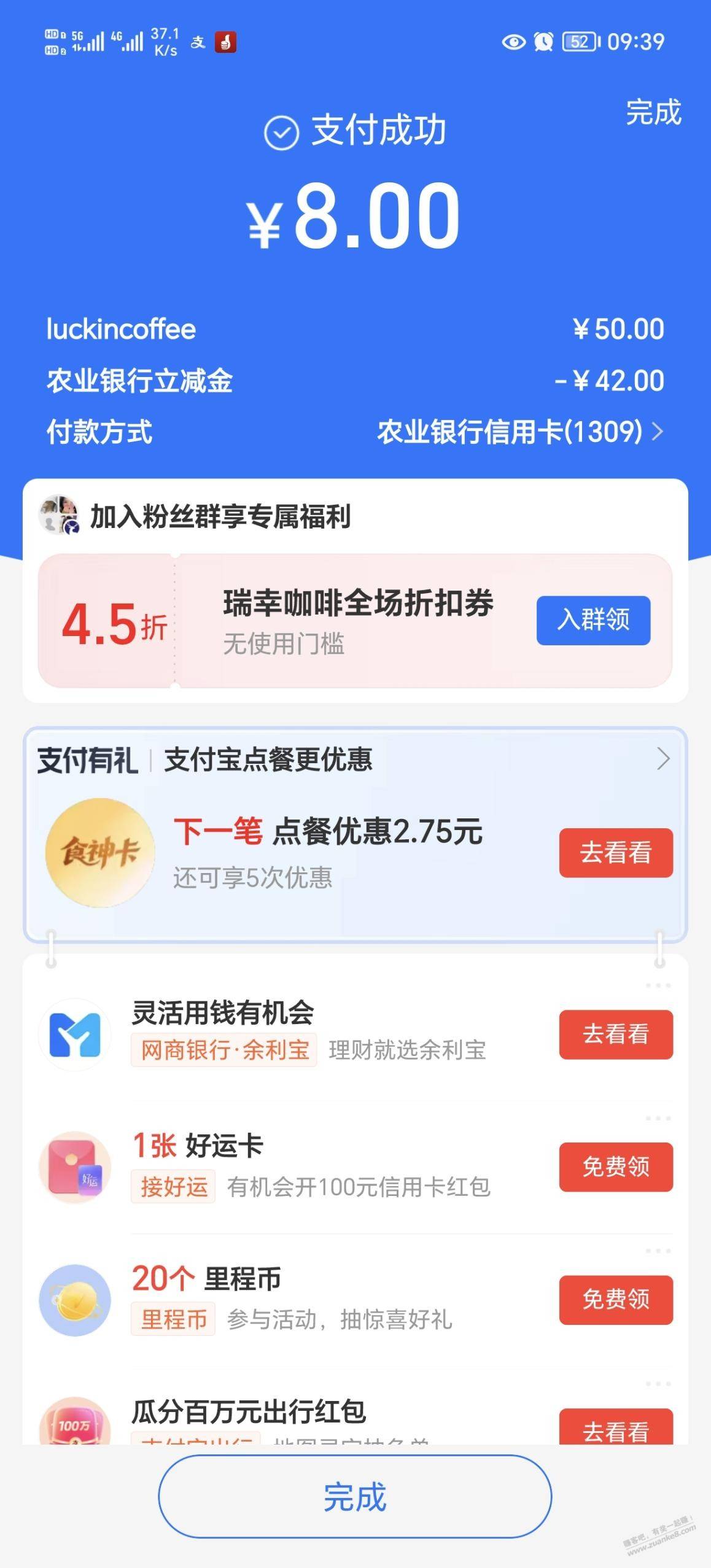 瑞幸app买50礼品卡跳转支付宝农行xyk-42
